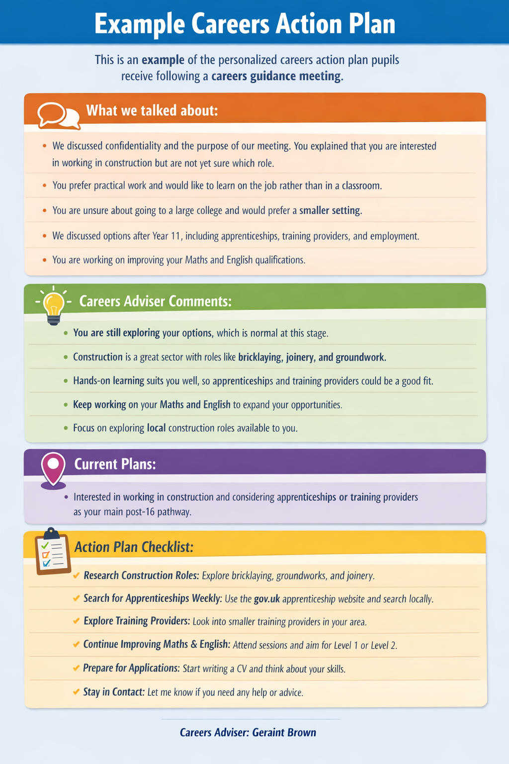 Download a sample Careers Action Plan (PDF)
