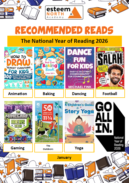 At Esteem North we support pupils to access appropriate phonics instruction and intervention to teach skills in word reading. Our carefully sequenced reading curriculum develops language comprehension and enjoyment of reading. We want pupils to develop a love of reading and be able to understand and access more about the world in which they live, through the knowledge they gain from texts. They can also learn skills such as empathy, curiosity, imagination, social skills and emotional regulation through planning a broad spectrum of genres and authors.